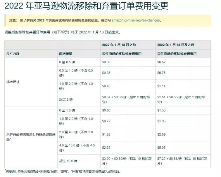 此次费用变更要点将于2022年1月18日(太平洋标准时间)起在亚马逊美国站生效: